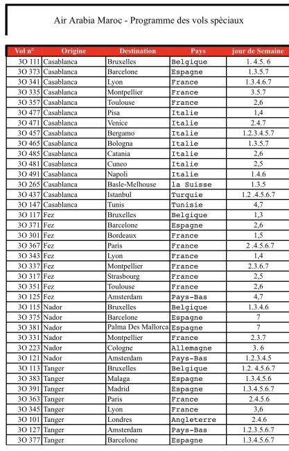 Air Arabia heeft een lijst gepubliceerd van geplande "speciale vluchten" vanuit Marokko naar meerdere Europese steden.