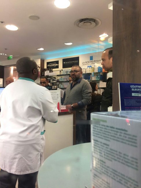 Nieuwe foto’s van Koning Mohammed VI werden vandaag op social media gedeeld. De monarch werd zich in een apotheek in Parijs gefotografeerd.